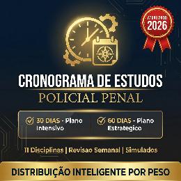 Esse cronograma organiza sua rotina de estudos pra 30 ou 60 dias. Todas as 11 disciplinas distribuídas de forma estratégica. Você só precisa abrir, olhar o dia e estudar.